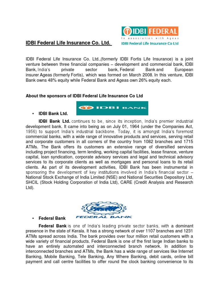 Idbi bank limited is a corporate agent of idbi federal life insurance company limited having its registration no. The corporate agent does not underwrite the risk or act as an insurer. As one of indias growing life insurance companies idbi federal life insurance offers a diverse range of wealth management protection and retirement solutions to individual and corporate customers.